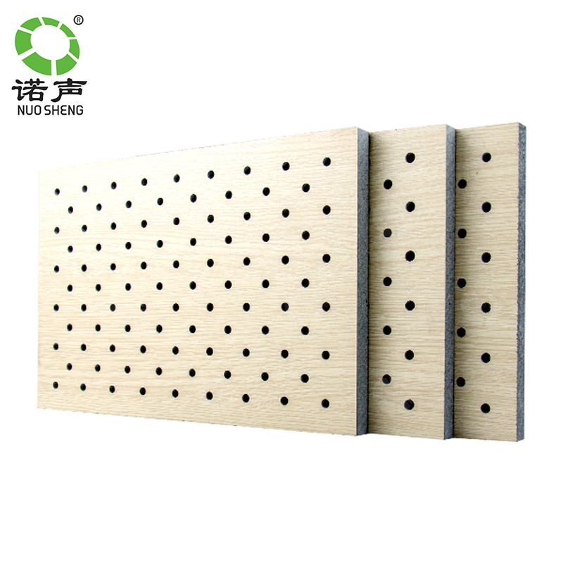 1、實現吸聲的技木原理是:一是在材料本身內形成多孔結構,達到一定的吸聲效果,其二是在成品板上通過開槽、鉆孔形成穿孔板共振結構,達到吸聲效果。并配合吸聲無紡布進一步提升吸音效果。