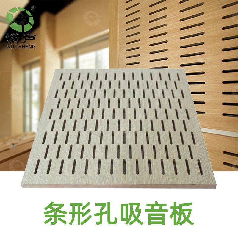 諾聲條形孔吸音板是一種在吸音基材板的基礎上穿孔達到狹縫共振的優質吸音材料,是—種較理想的聲學環境空間的裝飾材料,針對有高防火要求的場所,推薦選用A級防火基材,這樣的穿孔可形成A級阻燃穿孔吸聲板,具有吸音、環保、阻燃、隔熱、保溫、防潮、防霉變、易除塵、易切割、可拼花、施工簡便、穩定性好、抗沖擊能力好、獨立性好、性價比高等優點,有豐富多種的顏色可供選擇,可滿足不同風格和層次的吸音裝飾需求。條形孔吸音板規格同一般的孔木吸音板一樣,只是穿孔樣式不同而已,板材大小都是差不多的,除非是定制款。